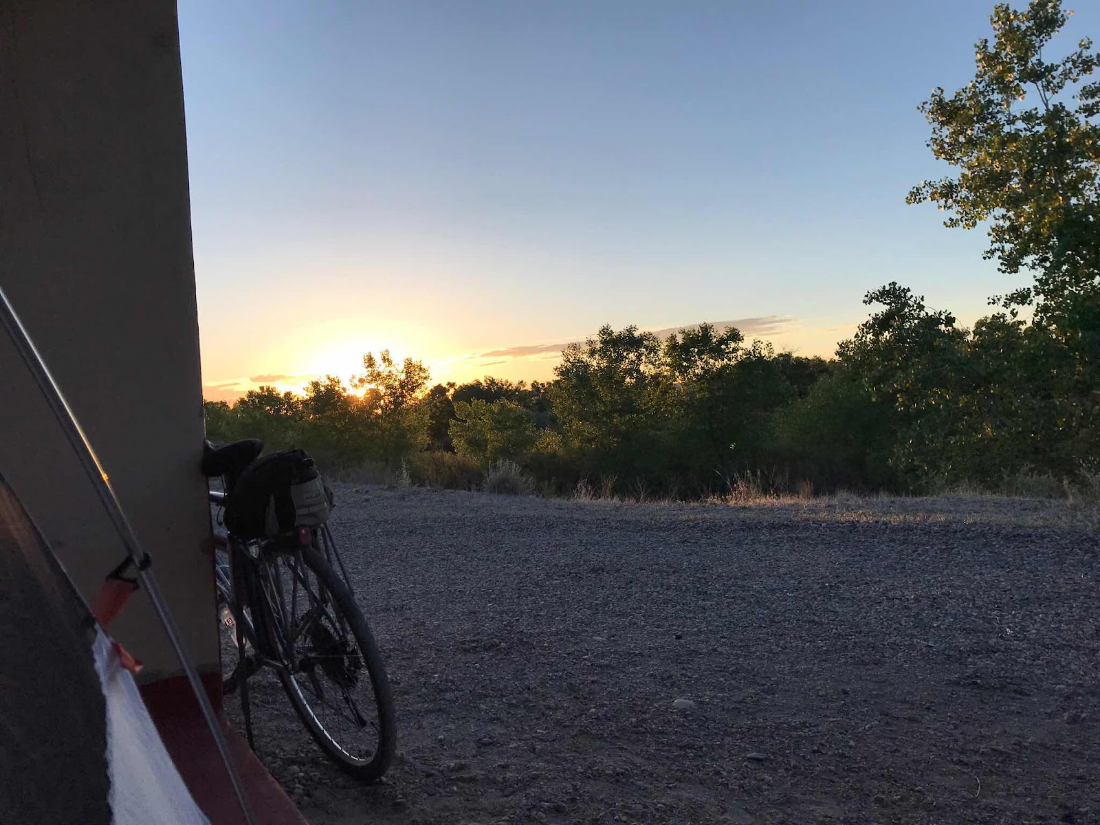 Poking my head out of my tent I enjoy the sunrise.